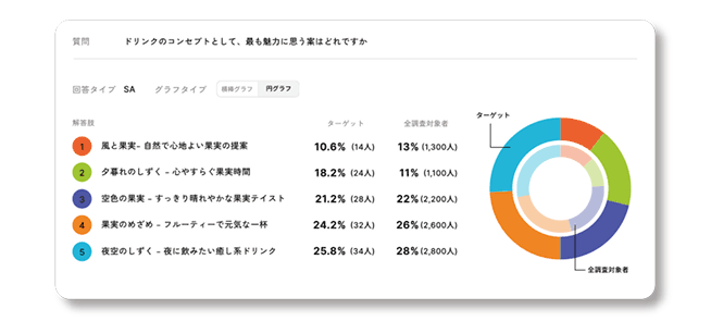 dentsu Japanの独自大規模調査を学習させた1億人規模のAIペルソナ群を活用し、仮想定量調査を行うシステムです。リクルーティングしたAIペルソナ群に質問を行い、結果を集計。仮説検証やテストマーケティングなどを素早く試行できます。